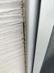 サイディングは水で劣化するので、こういった開いた部分もしっかり閉じるなり下地処理