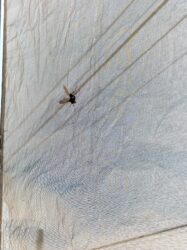 足場のネットに蜂が止まっています。