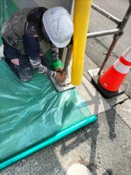 今日の作業は、養生と付帯部の錆止め塗装です。