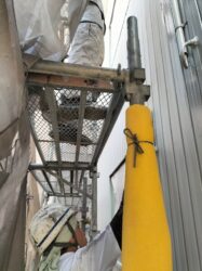 今日は、職人の人数が4人入っていたため、3人の職人が足場に縦並びで