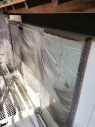 塗装が完了した部分の養生は、塗膜にビニールがくっつきやすいのが難点で、