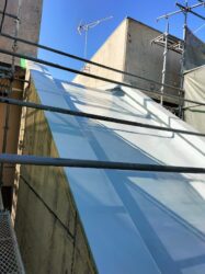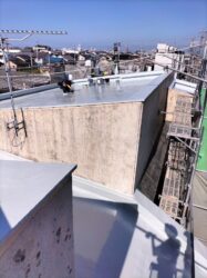この現場は、アパートの屋上の防水と、ALCの壁のクラック補修をしています。