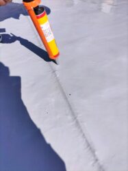 トップコートは、防水層を紫外線から守るために表面に塗る保護膜のような役割です。