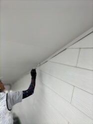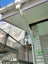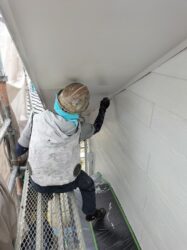 今日は、外壁の下塗と軒天の塗装を行っていました。