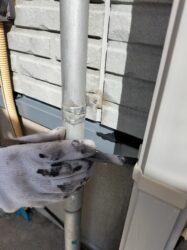 土台水切は下の方にあるので、足場に登らなくても作業できる箇所ですが、