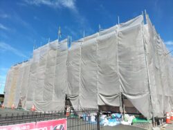 もちろん、塗装を行うに当たって足場が組み立ててありますが、