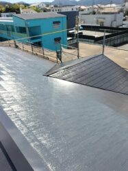 スレートの屋根の塗装が完了し、しっかりツヤのある塗膜ができあがっていました。