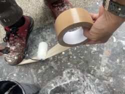 なので、塗装面にローラーの毛が付着するのを防ぐために先にガムテープを使って