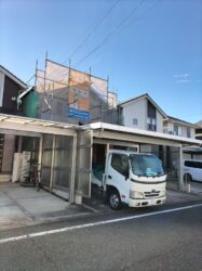 住宅街の一角ということもあり、高圧洗浄時に隣家に飛散するのを防ぐために