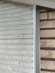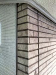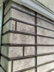 白いサイディング側の目地シーリングは新しくなっていますが、レンガ調の方は