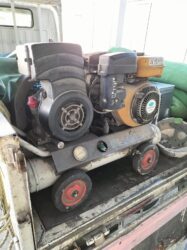 これは、外壁の吹き付け塗装に使う吹付け用の空気を送る機械だそうで、