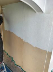 下地は、サイディングにリシンが吹き付けてある状態です。