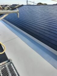 陸屋根とスレート屋根の合わさった珍しいタイプです。