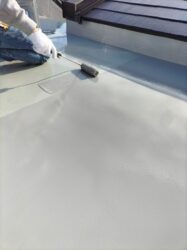 防水の施工は、仕上げのトップコートの段階です。