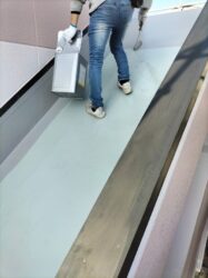 通路部分は、きれいに仕上がっていますが、まだ手直し箇所のマスキングテープ